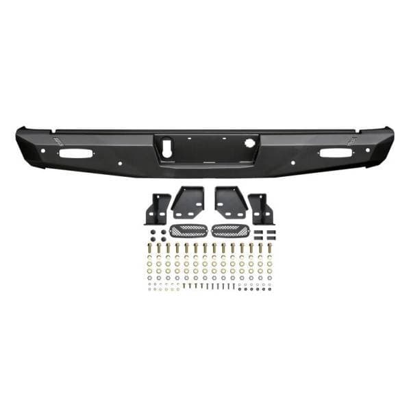 "High and Tight" best describes the great looking new Pro-Series Rear Bumpers from Westin. This all new "off road style" rear bumper features a light weight, slim, one-piece design, adding a modern, aggressive look to your truck. Built to improve ground clearance and departure angles when driving in more rugged terrain. The Pro-Series Rear Bumper is fully compatible for OEM parking sensors, hitch, and blind spot monitors. It also includes two LED license plate lights and can accommodate LED back up lights (sold separately). Featuring a textured black finish with an e-coated base coat, providing long lasting corrosion protection from the elements with easy bolt-on installation. Just add the original Pro-Mod Front Bumper, and your transformation from stock to custom is complete.
