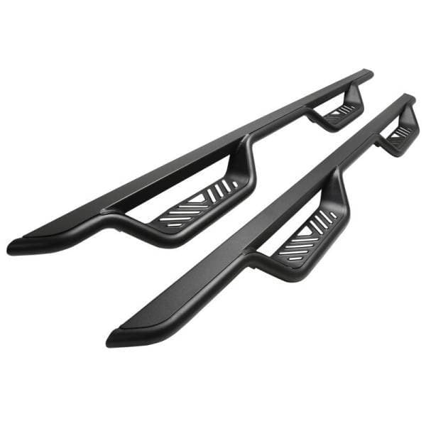 If you want a unique upgrade that makes accessing your truck, Jeep or SUV easier, Westin's Outlaw Drop Nerf Step Bars are the finishing touch you need. Crafted from mandrel bent 1.5' diameter steel tube and paired with a welded cab length top plate, these step bars are more than just an eye-catching accessory. The distinctive 4' drop step features a die-stamped step plate that makes it easy to knock the mud, dirt, and debris from your feet before you step into the cabin. Worried about compatibility' We've got you covered. From GM, Ram, and Toyota to Ford Trucks and even the newer 2 and 4 door Broncos, the Outlaw Drop Nerf Step Bars are designed to be a seamless fit. You can learn all about the benefits of adding nerf bars to your rig here. Durability' Check. Aided by an electrostatic base coat, these bars are resistant to corrosion. They're finished with corrosion-resistant textured powder-coat (even in the stainless finish option) and feature a die-stamped stainless steel step area which makes them ruggedly appealing and able to withstand the elements. No tedious installations here ' the Outlaw Drop Nerf Step Bars install with a bolt-on installation process that doesn't require any drilling. Plus, all the necessary hardware and mounting brackets are included in the package. These step bars are backed by the confidence of Westin's full 3-year warranty. If you're in the market for a practical and stylish nerf step with a blend of premium features, these side steps might just be your next buy. Contact us if you have any questions - we're happy to help.