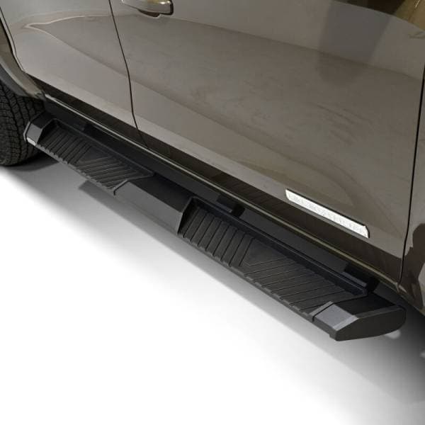 AT6 Running Boards are designed for full size trucks and feature a 5-inch wide step area with integrated indented pads for solid footing. Built with clean, rounded end caps and bracket covers for an OEM?style appearance, they offer a refined yet rugged look. Two finish options are available, textured black powder-coated extruded aluminum, backed by a 3?year limited warranty, or bright finish polished stainless steel with a limited lifetime warranty. These boards are lightweight but structurally durable, designed to minimize added weight with the strength for the toughest jobs. The footboard and pads are ergonomically placed for comfort and maximum traction. Bracket covers are used to conceal mounting hardware and help preserve that clean factory look. The AT6 models are vehicle-specific fit and include hardware to bolt on the boards with no drilling required. Installation takes about 1.5hrs, and depending on the height of the truck, should not require a lift. The aluminum construction offers excellent weather resistance with proper care and maintenance, but for harsh road conditions or regions where salt is used on the roadways during winter, choose stainless steel. Replace your factory running boards with AT6. They are a sleek, solidly built option with stylish design, ample stepping area, and finish choices for a custom look.
