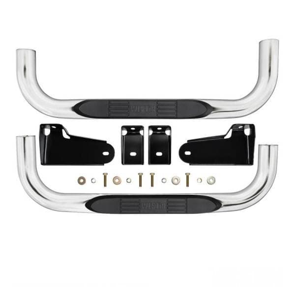 Westin(TM) E-Series Nerf Bars are made of 3in. diameter round tubing and are vehicle specific designs. Step design and mounting technique varies by application (mounting kit included). They feature recessed area mounted step pads unique to E-Series Nerf Bars feature the Westin(TM) brand name and are UV resistant.