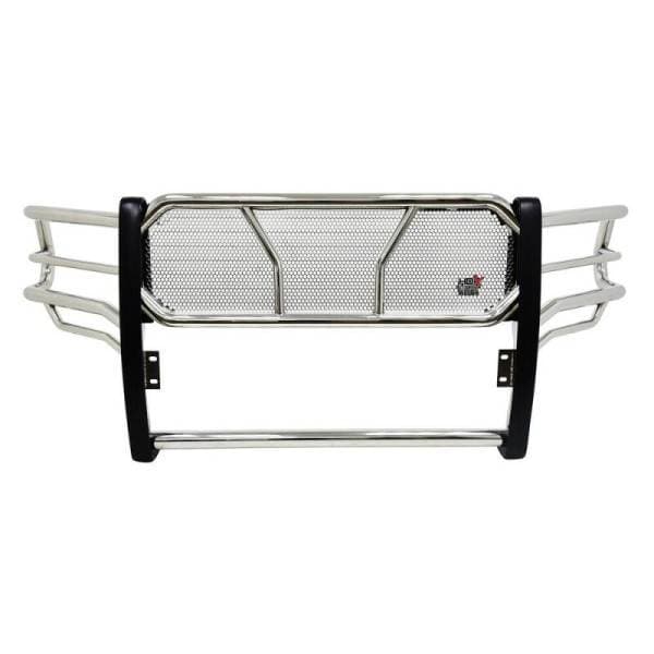 The HDX Grille Guard is the ultimate in extreme truck gear. Its a fully welded 1-piece grille guard that features full wraparound wings made of heavy duty 2in. diameter tube. Uprights are finished and protected with extra wide rubber that is 1/8in. thick and 2 3/4in. wide resulting in a solid clean look. The full punch plate grille protects the vehicles grille area. HDX Grille Guards are available in stainless and black powder coat finish.