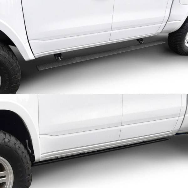Introducing the all-new Westin Pro-e Power Running Boards, a superior upgrade that combines the functionality and appearance of your Truck, Bronco, Jeep or SUV. The Pro-e Power Running Boards are designed with a practical feature that automatically deploys when the vehicle's door is opened. This allows for easy entry and exit. When the door is closed, the running boards smoothly retract, seamlessly integrating with the vehicle's body and maintaining its sleek appearance.Equipped with two waterproof IP68 rated motors per side, these running boards are engineered for durability and reliability in any weather condition. The integrated LED lights illuminate the 6-inch wide, durable aluminum step surface, ensuring enhanced visibility and safety. Whether it's day or night, you can confidently step onto these running boards with their impressive weight capacity of up to 300 lbs. per side.The Pro-e Power Running Boards are constructed from corrosion-resistant aluminum and finished with a durable textured black powder coat. The included vehicle-specific mounting brackets and hardware guarantee a seamless installation process, ensuring a perfect fit for your vehicle.
