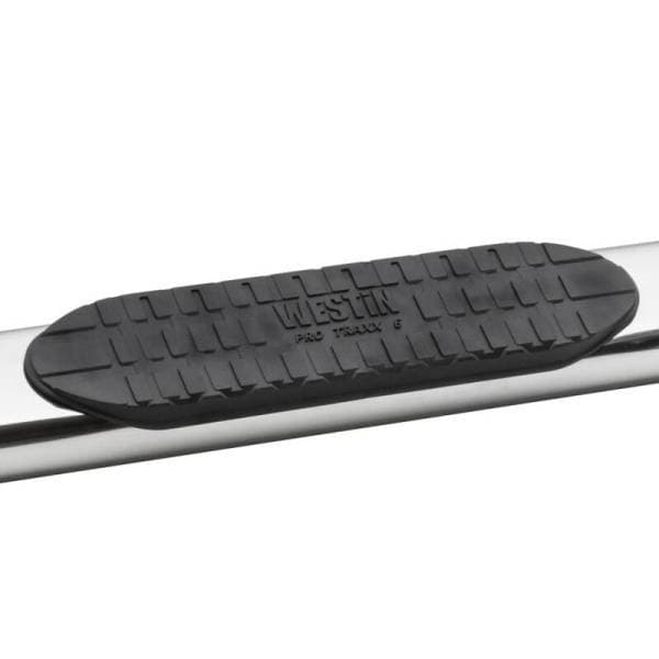 Westin PRO TRAXX 6 for full-sized trucks are cab-length steps for ideal functionality and cab access. They feature extra heavy-duty bold step pads and a unique oval tube shape in a straight tube design. Applications are vehicle specific bolt-on, no-drill and rocker panel mounted. Available in polished stainless steel, backed by a lifetime warranty, and black powder coated mild steel, backed by a 3 year warranty.