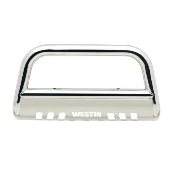Westin(TM) E-Series Bull Bars are a front-end light bar designed for trucks and larger model SUVs. It is made of 3 diameter polished stainless steel tube. It mounts utilizing existing vehicle mounting points and installation does not require any drilling to the vehicle frame. Comes complete with mounting kit the Westin(TM) E-Series Bull Bar provides a mounting point for 2 auxiliary lights up to 6 in diameter. It features a die-cut Westin(TM) block logo design on the stainless steel skid plate unique to the Westin(TM) E-Series Bull Bar.