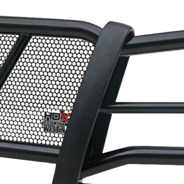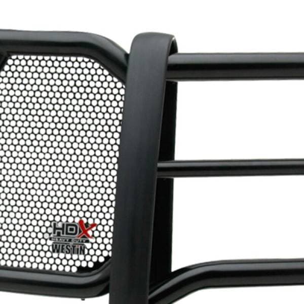 The HDX Grille Guard is the ultimate in extreme truck gear. Its a fully welded 1-piece grille guard that features full wraparound wings made of heavy duty 2in. diameter tube. Uprights are finished and protected with extra wide rubber that is 1/8in. thick and 2 3/4in. wide resulting in a solid clean look. The full punch plate grille protects the vehicles grille area. HDX Grille Guards are available in stainless and black powder coat finish.