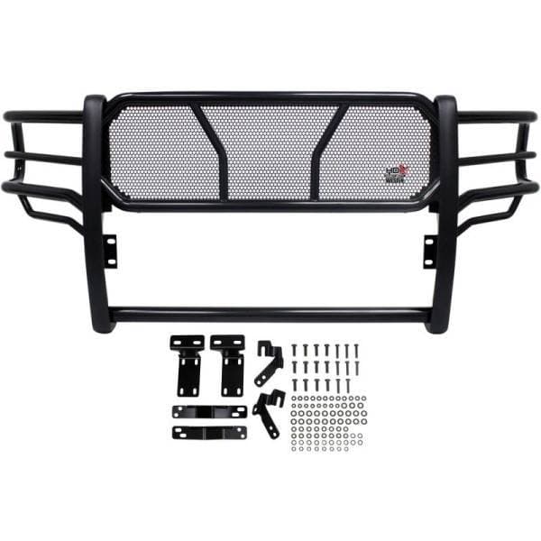 The HDX Grille Guard is the ultimate in extreme truck gear. Its a fully welded 1-piece grille guard that features full wraparound wings made of heavy duty 2in. diameter tube. Uprights are finished and protected with extra wide rubber that is 1/8in. thick and 2 3/4in. wide resulting in a solid clean look. The full punch plate grille protects the vehicles grille area. HDX Grille Guards are available in stainless and black powder coat finish.
