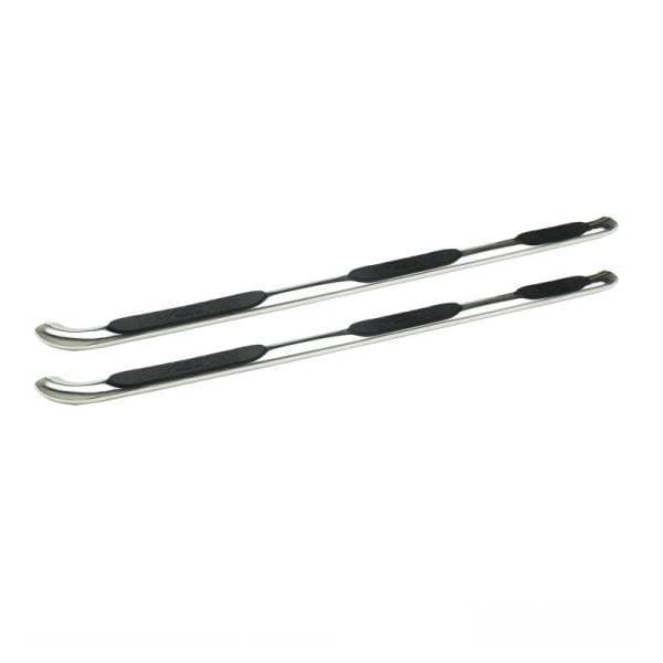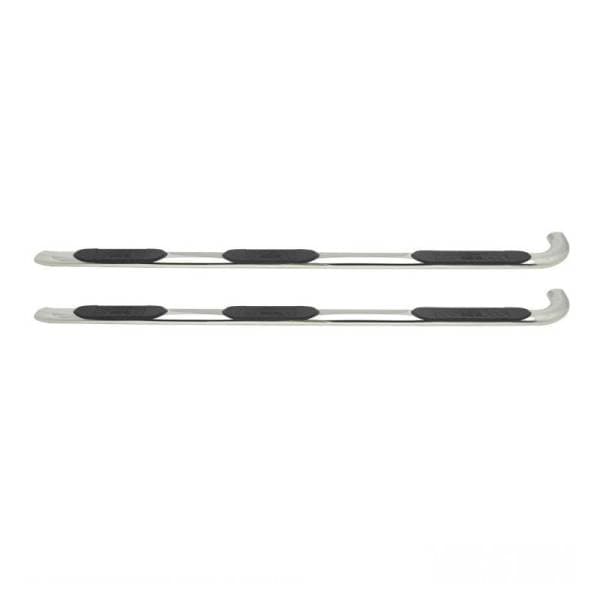 Platinum 4 Oval Wheel To Wheel Step Bar; Polished Stainless Steel; Mount Kit Included; Rocker Mount; For Super Cab