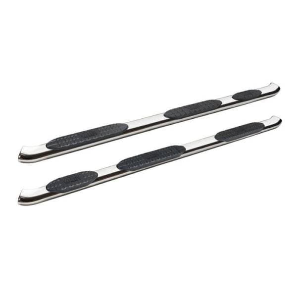 Westin PRO TRAXX 5 W2W Steps feature a heavy-duty step pad that provides a wider and more secure step area. Featuring 30 degree factory style bends that have seamless domed ends without end-caps or exposed bolt heads. Applications are no-drill, which makes installation easy!