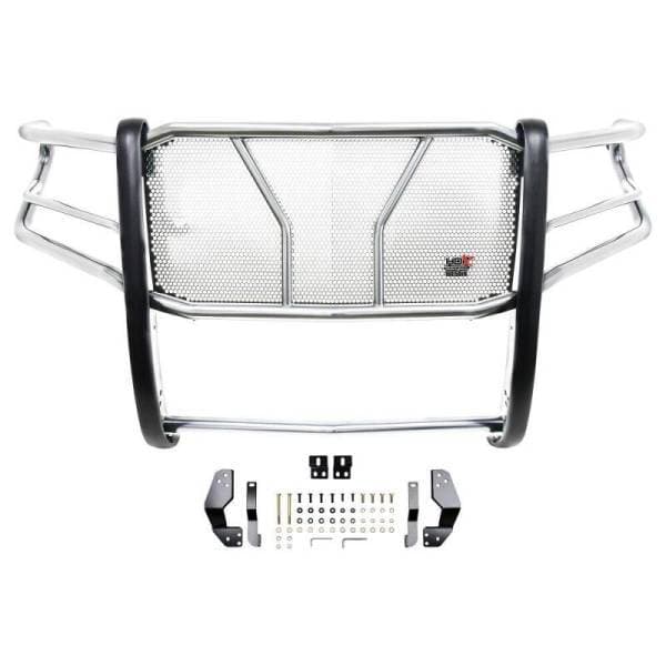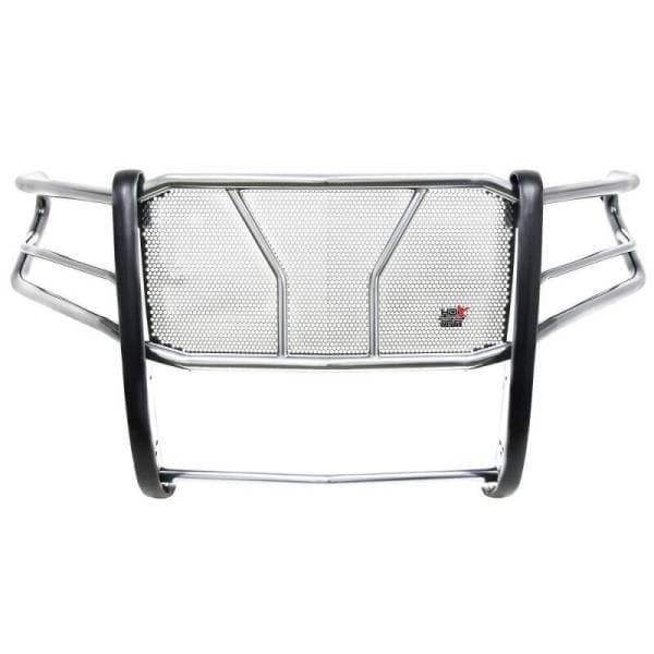 The HDX Grille Guard is the ultimate in extreme truck gear. Its a fully welded 1-piece grille guard that features full wraparound wings made of heavy duty 2in. diameter tube. Uprights are finished and protected with extra wide rubber that is 1/8in. thick and 2 3/4in. wide resulting in a solid clean look. The full punch plate grille protects the vehicles grille area. HDX Grille Guards are available in stainless and black powder coat finish.