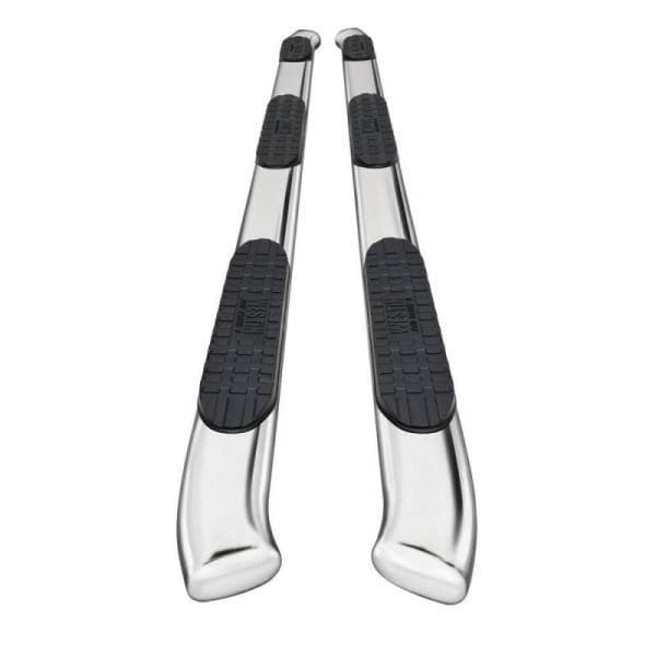 Westin PRO TRAXX 5 W2W Steps feature a heavy-duty step pad that provides a wider and more secure step area. Featuring 30 degree factory style bends that have seamless domed ends without end-caps or exposed bolt heads. Applications are no-drill, which makes installation easy!