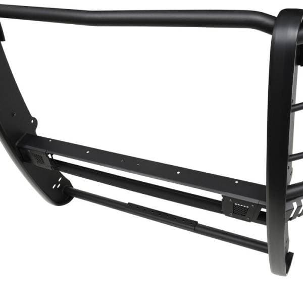 Westin's Sportsman X Grille Guard effectively combines aggressive styling with heavy duty front end protection. Engineered to provide both great looks and performance, Sportsman X’s unique design compliments today’s larger grille designs, and is available to fit most full and mid size truck applications. Sportsman X has an optional detachable mesh panel (sold separately) which is specifically designed to fit the opening in the center section of Sportsman X Grille Guard, or can be removed to accommodate the flush mounted 26 in. dual row LED light bar (sold separately). A smaller removable mesh panel designed for the factory sensor location opening is included as standard with Sportsman X. For specific Chevy and Dodge/RAM applications a Sportsman X Sensor Kit (sold separately) is available. An exterior step plate is located on the 1-5/8 in. bottom tube to provide easy access to the engine compartment. Built with heavy duty 2-1/4 in. upright rubber strips and 1- 5/8 in. outer tubes, Sportsman X Grille Guard is designed to provide protection and style for years to come.