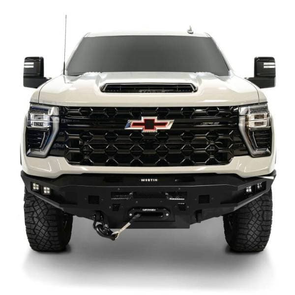 The Pro-Series Front Bumper from Westin is an attractive, heavy duty, "winch capable" upgrade which retains the OE factory features while upgrading both looks and functionality. Built for adventure, this bumper is ready for anything standing in its way. The Pro-Series was engineered to improve both approach angles and ground clearance for enhanced off-road capabilities. Constructed with a 10 gauge steel bumper shell the Pro-Series is designed for maximum strength and durability. Utilizing a heavy duty 1/4" steel center section capable of accomodating most any 12k lb. winch, and added welded mounting points for recovery, this bumper takes you off the highway with confidence. Engineered to fit most double-row 20" LED light bars (sold separately) for added safety on those late night excursions. Finished with a durable E-coat and black textured 2-stage treatment and backed by a full 3-year warranty Westin has you covered. Includes all the necessary mounting hardware for a "hassle free installation". Pro-Series is available for Ford, Chevy, Ram and Toyota applications. Add the matching Pro-Series Rear bumper to complete the look and take your truck to the next level.