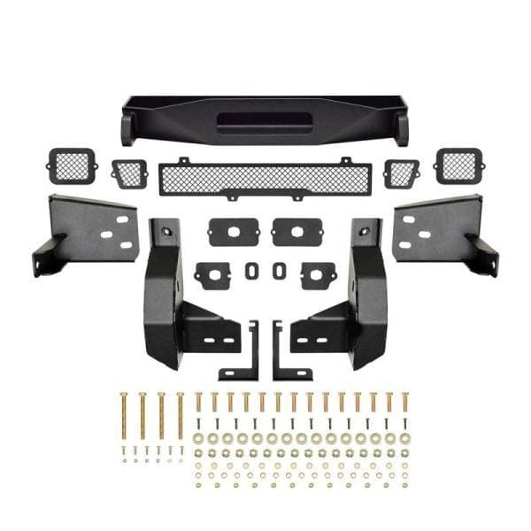 The Pro-Series Front Bumper from Westin is an attractive, heavy duty, "winch capable" upgrade which retains the OE factory features while upgrading both looks and functionality. Built for adventure, this bumper is ready for anything standing in its way. The Pro-Series was engineered to improve both approach angles and ground clearance for enhanced off-road capabilities. Constructed with a 10 gauge steel bumper shell the Pro-Series is designed for maximum strength and durability. Utilizing a heavy duty 1/4 in. steel center section capable of accomodating most any 12k lb. winch, and added welded mounting points for recovery, this bumper takes you off the highway with confidence. Engineered to fit most double-row 20 in. LED light bars (sold separately) for added safety on those late night excursions. Finished with a durable E-coat and black textured 2-stage treatment and backed by a full 3-year warranty Westin has you covered. Includes all the necessary mounting hardware for a "hassle free installation". Pro-Series is available for Ford, Chevy, Ram and Toyota applications. Add the matching Pro-Series Rear bumper to complete the look and take your truck to the next level.