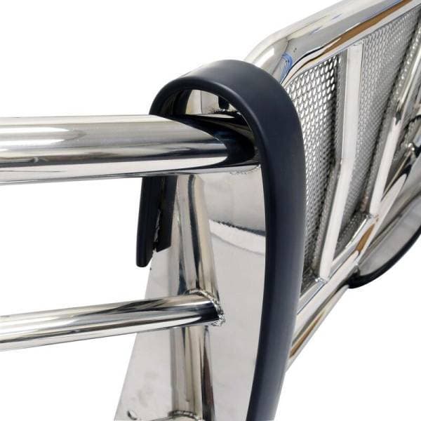 The HDX Grille Guard is the ultimate in extreme truck gear. It’s a fully welded 1-piece grille guard that features full wraparound wings made of heavy duty 2 in. diameter tube. Uprights are finished and protected with extra wide rubber strip that is 1/8 in. thick and 2 3/4 in. wide resulting in a solid clean look. The full punch plate grille protects the vehicle's grille area. HDX Grille Guards are available in stainless and black powder coat finish.