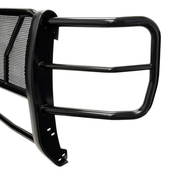The HDX Grille Guard is the ultimate in extreme truck gear. It’s a fully welded 1-piece grille guard that features full wraparound wings made of heavy duty 2 in. diameter tube. Uprights are finished and protected with extra wide rubber strip that is 1/8 in. thick and 2 3/4 in. wide resulting in a solid clean look. The full punch plate grille protects the vehicle's grille area. HDX Grille Guards are available in stainless and black powder coat finish.