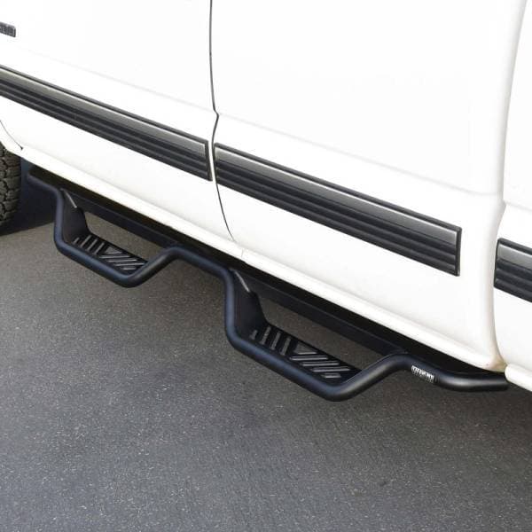 If you want a unique upgrade that makes accessing your truck, Jeep or SUV easier, Westin's Outlaw Drop Nerf Step Bars are the finishing touch you need. Crafted from mandrel bent 1.5' diameter steel tube and paired with a welded cab length top plate, these step bars are more than just an eye-catching accessory. The distinctive 4' drop step features a die-stamped step plate that makes it easy to knock the mud, dirt, and debris from your feet before you step into the cabin. Worried about compatibility' We've got you covered. From GM, Ram, and Toyota to Ford Trucks and even the newer 2 and 4 door Broncos, the Outlaw Drop Nerf Step Bars are designed to be a seamless fit. You can learn all about the benefits of adding nerf bars to your rig here. Durability' Check. Aided by an electrostatic base coat, these bars are resistant to corrosion. They're finished with corrosion-resistant textured powder-coat (even in the stainless finish option) and feature a die-stamped stainless steel step area which makes them ruggedly appealing and able to withstand the elements. No tedious installations here ' the Outlaw Drop Nerf Step Bars install with a bolt-on installation process that doesn't require any drilling. Plus, all the necessary hardware and mounting brackets are included in the package. These step bars are backed by the confidence of Westin's full 3-year warranty. If you're in the market for a practical and stylish nerf step with a blend of premium features, these side steps might just be your next buy. Contact us if you have any questions - we're happy to help.