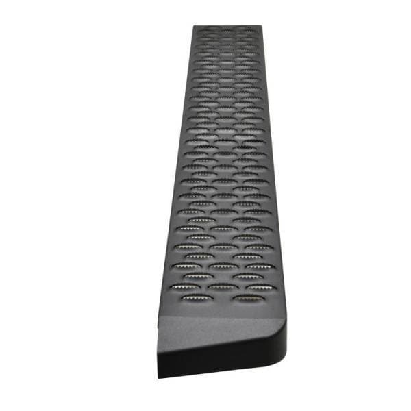 Westin's Grate Steps Running Boards are engineered to provide maximum traction without sacrificing style. The 6 1/4 in. step surface width features an aggressive 1/4 in. high punched tread, allowing traction in any weather condition. The unique serrated edges help clean dirt, snow, and mud off your boots to keep truck cab clean. Grate Steps Running Boards feature stylishly formed and fully welded ends with a custom die-cast riveted logo badge. E-coated base coat provides long lasting corrosion protection, which far surpasses that of the competition. Solid 1-piece construction makes Grate Steps Running Boards ideal for construction and commercial use. Available in universal lengths (54 in., 68 in., 75 in., 79 in., 83 in., 86 in. and 90 in.), with vehicle-specific mount kit required (sold separately). Available in textured black powder coat finish.