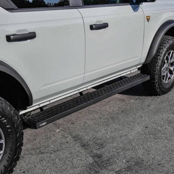 Westins Grate Steps Running Boards are engineered to provide maximum traction without sacrificing style. The 6 1/4in. step surface width features an aggressive 1/4in. high punched tread allowing traction in any weather condition. The unique serrated edges help clean dirt, snow and mud off your boots to keep truck cab clean. Grate Steps Running Boards feature stylishly formed and fully welded ends with a custom die-cast riveted logo badge. E-coated base coat provides long lasting corrosion protection which far surpasses that of the competition. Solid 1-piece construction makes the Grate Steps Running Boards ideal for construction, commercial, vans and utility use. Available in universal lengths (54in., 68in., 75in., 79in., 83in., 86in. and 90in.) with vehicle specific mount kit required, sold separately. Available in textured black finish.