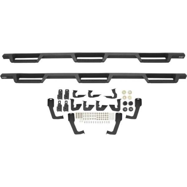 Westins HDX Drop Wheel-to-Wheel Nerf Step Bars feature a notched bar design with a 3rd step location for easy bed access. They provide strong traction with over 2 inches more of toe/heel step area than our Westin's HDX Drop W2W Nerf Step Bars include an added 3rd step location for easier bed area and cargo access. HDX also boasts more than 2 inches of added toe/heel step area which far exceeds all other competitive brands. HDX's notched bar design construction results in a reliable long lasting Bar, with a solid fit and a rugged look. The added length of HDX Drop Wheel-to-wheel Nerf Step Bars provides users with better cab access and better footing and traction for both drivers and passengers. Product includes mount kit and is offered in a variety of vehicle specific applications. Bolt-on installation so no drilling required. Mount kit included. Westin's exclusive Isolator Bracket supports the step bar past the truck cab, a feature that competitors do not offer. Without an Isolator Bracket, the step area that extends past the vehicle is left unsupported. Our unique design provides extra bed support without resulting in annoying creaking sounds.
