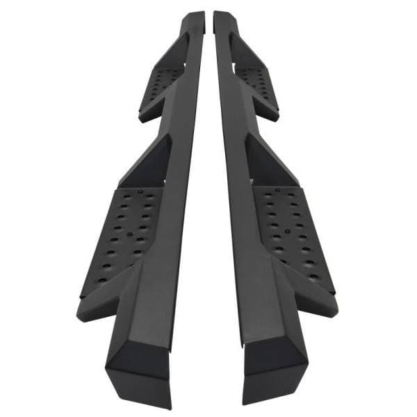 Westins HDX Drop Nerf Step Bars provide the rugged look and function that truck owners need and want. They feature a solid 1-piece steel construction and heavy duty punch plates creating high traction step areas. The HDX Drop Nerf Step Bars also feature Westins notched bar design which provides more than 2in. of additional toe/heel placement versus competitive brands. Available in a textured black finish that complements Westin HDX Bumpers. The HDX Drop Steps have vehicle specific applications and include a vehicle specific mount kit, installation hardware and instructions.