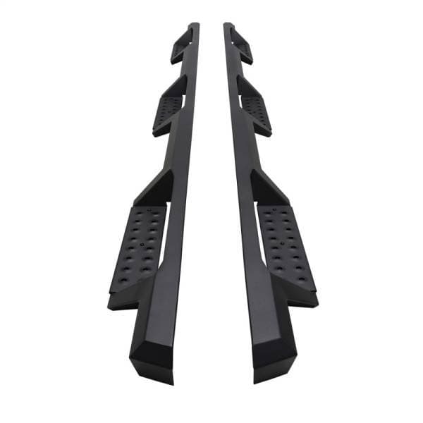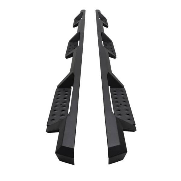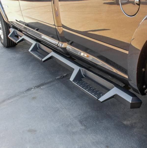 Westins HDX Drop Wheel-to-Wheel Nerf Step Bars feature a notched bar design with a 3rd step location for easy bed access. They provide strong traction with over 2 inches more of toe/heel step area than our Westin's HDX Drop W2W Nerf Step Bars include an added 3rd step location for easier bed area and cargo access. HDX also boasts more than 2 inches of added toe/heel step area which far exceeds all other competitive brands. HDX's notched bar design construction results in a reliable long lasting Bar, with a solid fit and a rugged look. The added length of HDX Drop Wheel-to-wheel Nerf Step Bars provides users with better cab access and better footing and traction for both drivers and passengers. Product includes mount kit and is offered in a variety of vehicle specific applications. Bolt-on installation so no drilling required. Mount kit included. Westin's exclusive Isolator Bracket supports the step bar past the truck cab, a feature that competitors do not offer. Without an Isolator Bracket, the step area that extends past the vehicle is left unsupported. Our unique design provides extra bed support without resulting in annoying creaking sounds.